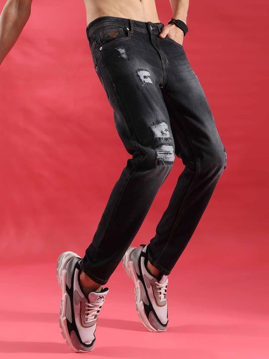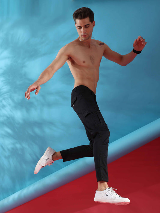 Black Baggy Fit Cargo 6 Pocket Jeans for Men